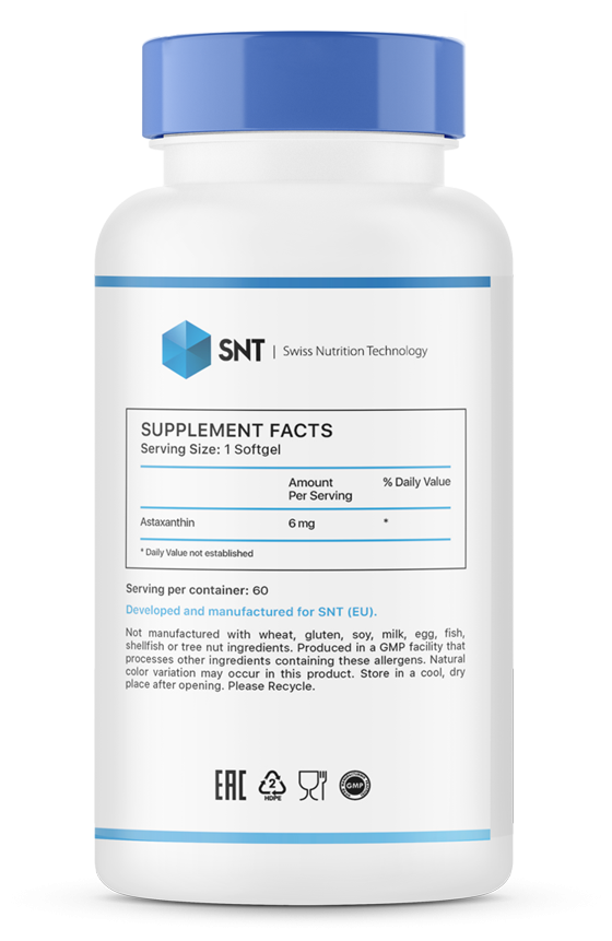 Астаксантин - это универсальное питательное вещество, несущее пользу для здоровья. Было показано, что он снимает общую усталость глаз и способствует здоровой воспалительной реакции. Астаксантин помогает оптимизировать здоровье иммунной системы, памяти, сердечно-сосудистой системы, обмена веществ и митохондрий. Он даже способен поддерживать здоровые когнитивные функции и повышать мышечную силу и выносливость.