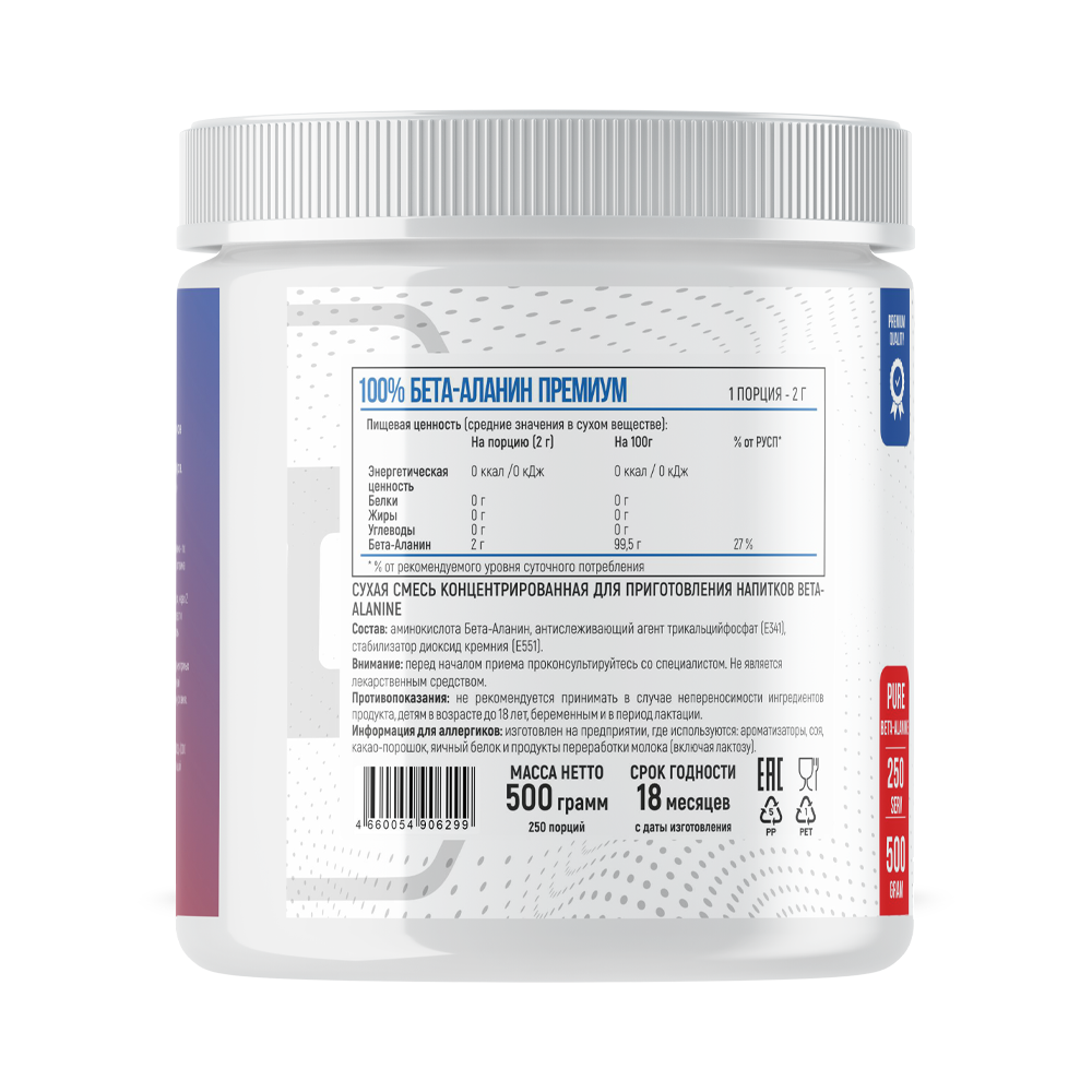 Бета-аланин Премиум: натуральный источник силы и выносливости! Создан на основе одноименной аминокислоты из высококачественного сырья, прошедшего многоступенчатую очистку и измельчение. Формула без красителей и ароматизаторов. Благодаря такому подходу бета-аланин легко растворяется, быстро усваивается и обеспечивает ощутимый эффект уже после первого применения.