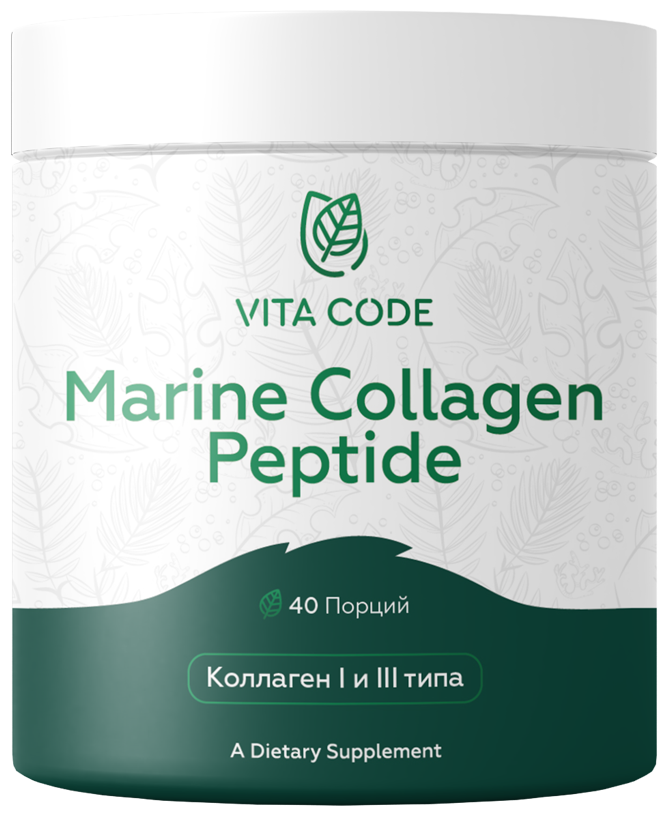 С возрастом выработка коллагена уменьшается, и именно из-за этого появляются морщины, уменьшается эластичность кожи, волосы делаются тусклыми и ломкими. С помощью Vita Code Marine Collagen недостаток коллагена легко восполнить и предотвратить появление морщин. Кроме того, коллаген борется с образованием целлюлита, укрепляет ногти и суставы.