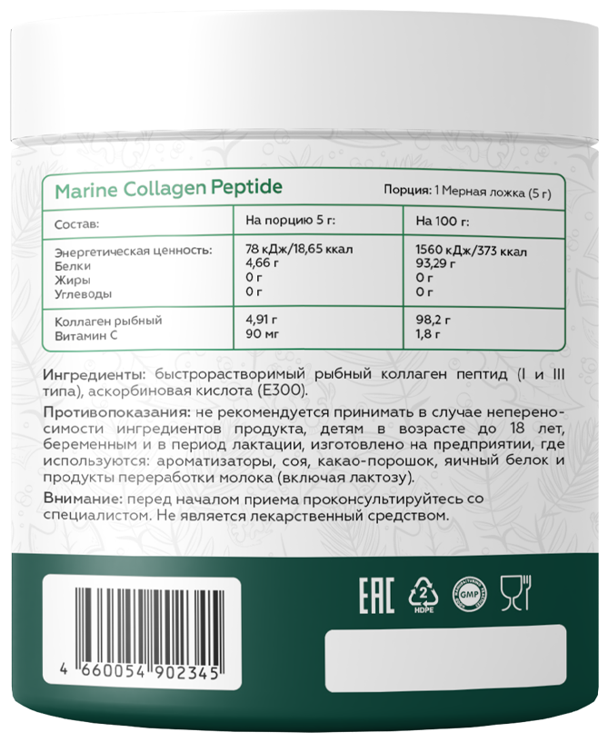 Marine Collagen - один из самых эффективных в усвоении видов коллагена, так как его структура почти идентична с человеческим коллагеном. Это вещество, которое используется организмом как строительный блок при создании соединительных тканей.