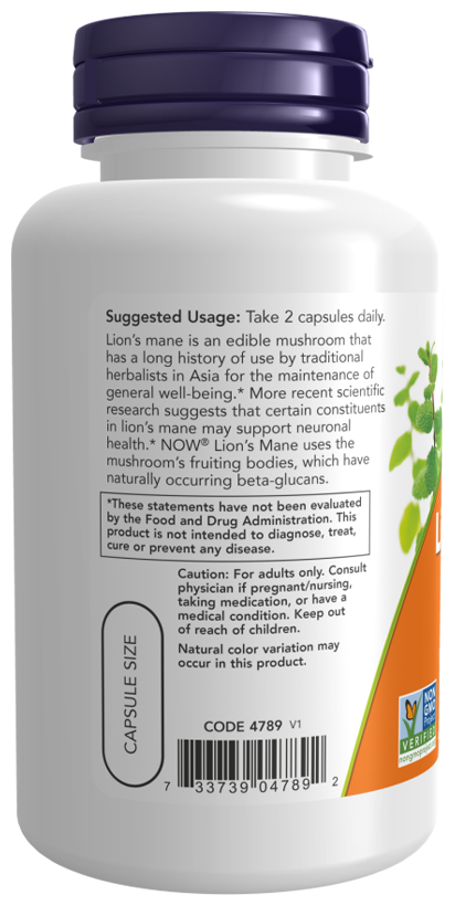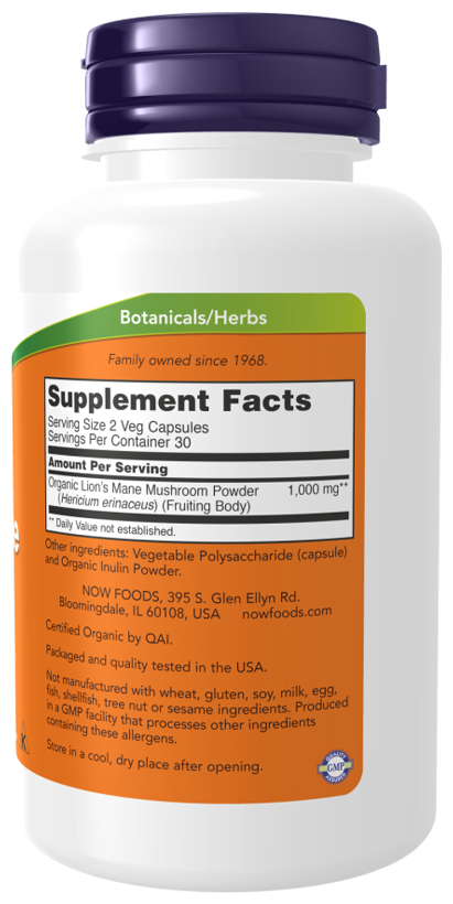 NOW Org Lion's Mane Mushroom, 60 капсул