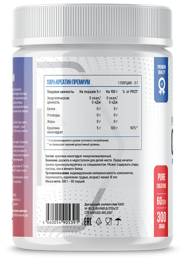 100% Creatine Premium - создан для тех, кто привык получать максимум не переплачивая. В основу добавки положено сырье премиум качества от концерна VitaJoy, прошедшее многоразовую микронизацию. Из каждой порции вы получаете 100% Креатин Моногидрат, лишенный всех сторонних примесей, в легкоусвояемой форме. Он быстро абсорбируется в желудке и дает эффект практически сразу после применения.