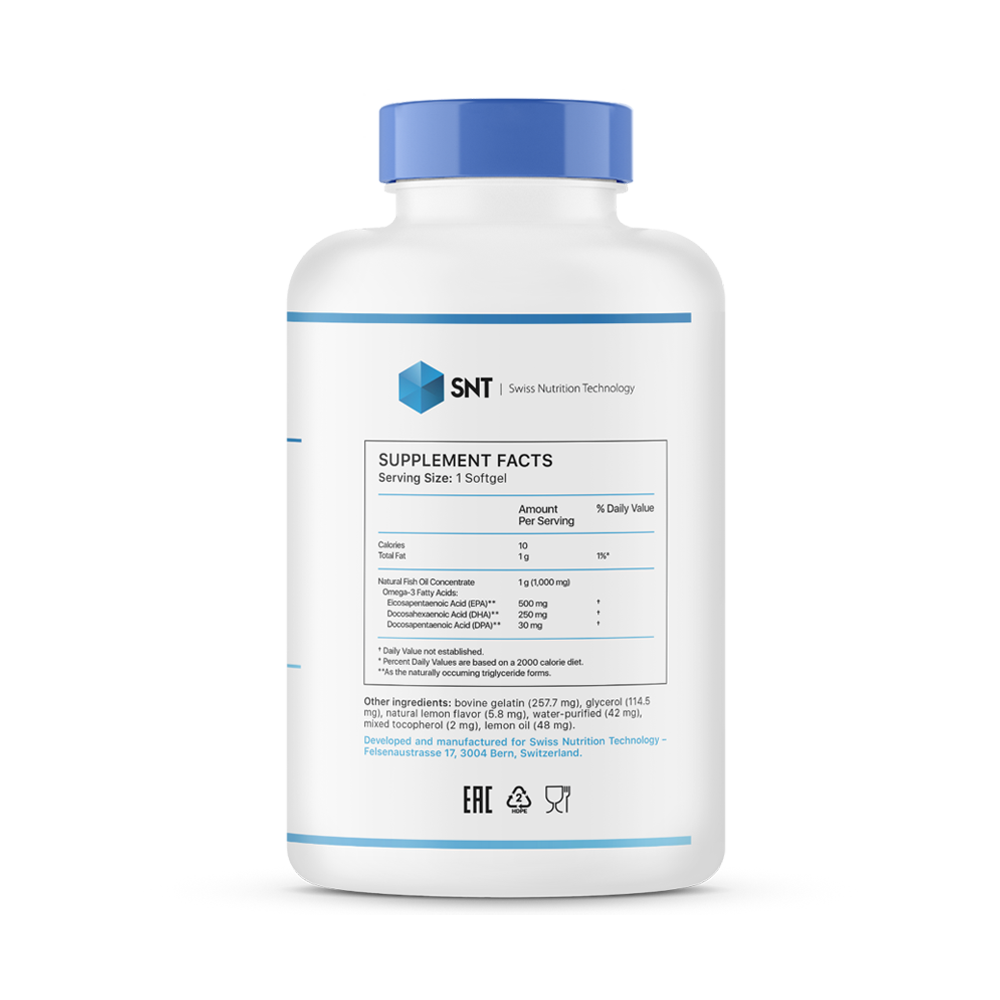 говяжий желатин (капсула) 257,7 мг, глицерин 114,5 мг, масло лимона 48 мг, очищенная вода 42 мг, натуральный ароматизатор лимон 5,8мг, концентрат смеси токоферолов 2мг. Источник омеги-концентрат рыбного жира (из анчоусов).