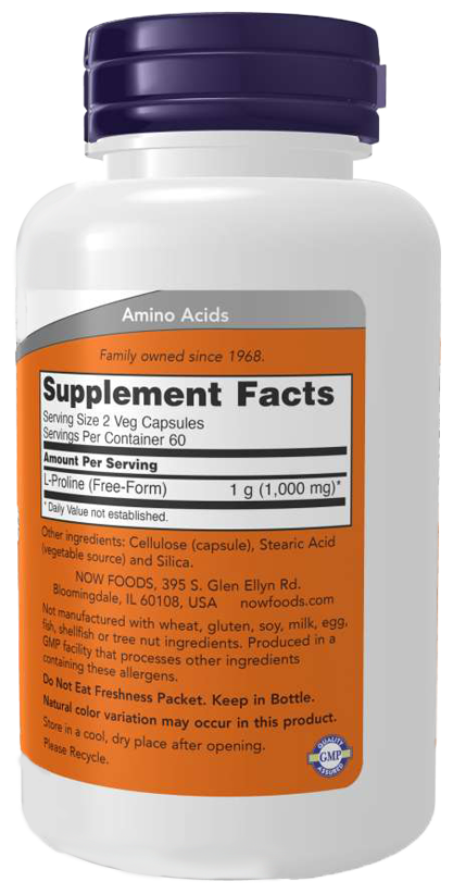 L-пролин - это аминокислота, необходимая для синтеза коллагена, основного структурного белка, который обеспечивает прочность и эластичность соединительных тканей организма. Эти ткани включают кожу, сухожилия, связки, суставы, кости и кровеносные сосуды (вены и артерии). Таким образом, L-пролин играет ключевую роль в укреплении и стабилизации структурных элементов тела.