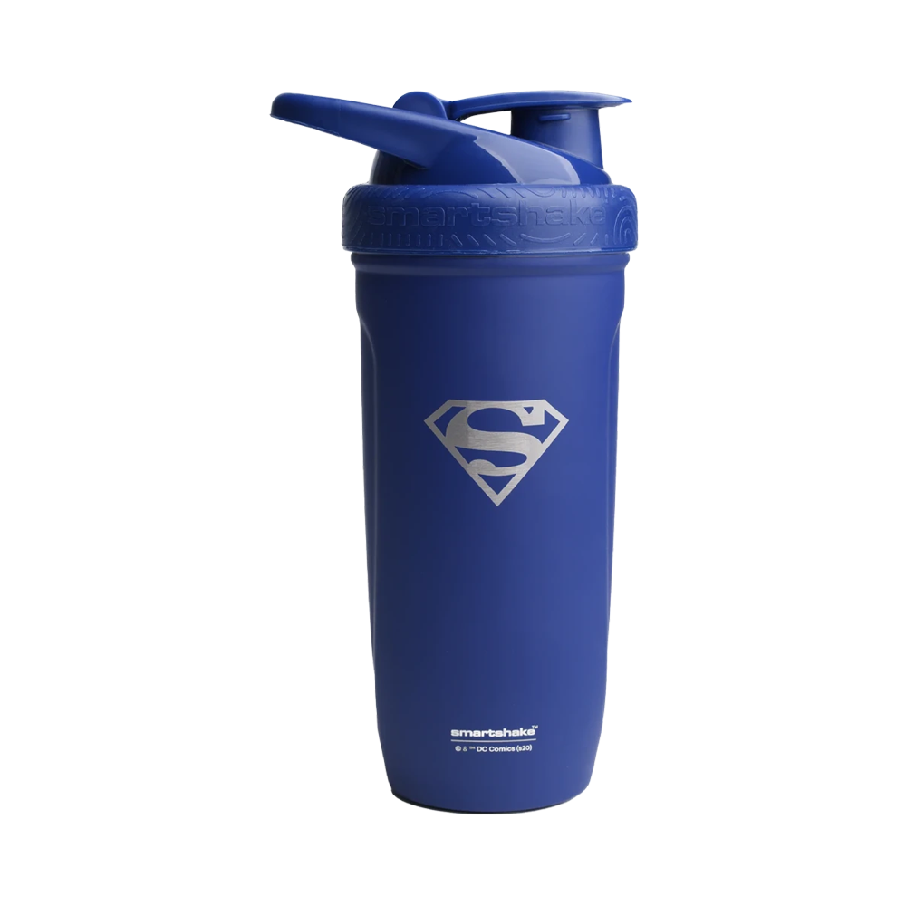 Шейкер SmartShake Reforce из нержавеющей стали в стиле DC Comics отличается прочной конструкцией и обеспечивает равномерное смешивание, позволяя вам получать необходимое топливо для тренировок, где бы вы ни находились.