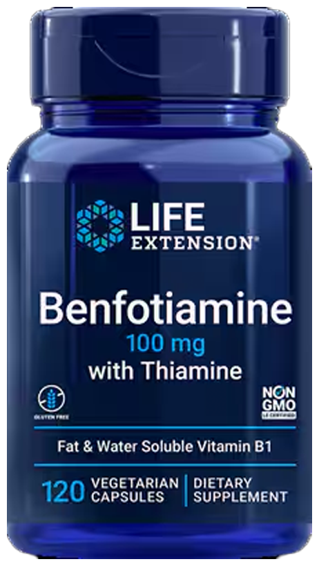 Бенфотиамин, жирорастворимая форма витамина В1 (тиамина), поддерживает здоровый метаболизм сахара в крови и помогает защитить ткани организма от конечных продуктов гликирования и окислительного стресса.