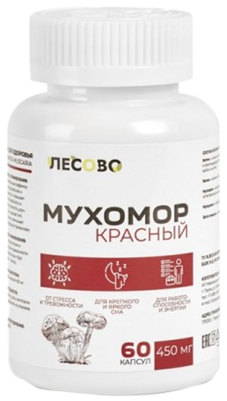 сушеный мухомор красный, желатин (оболочка капсулы)